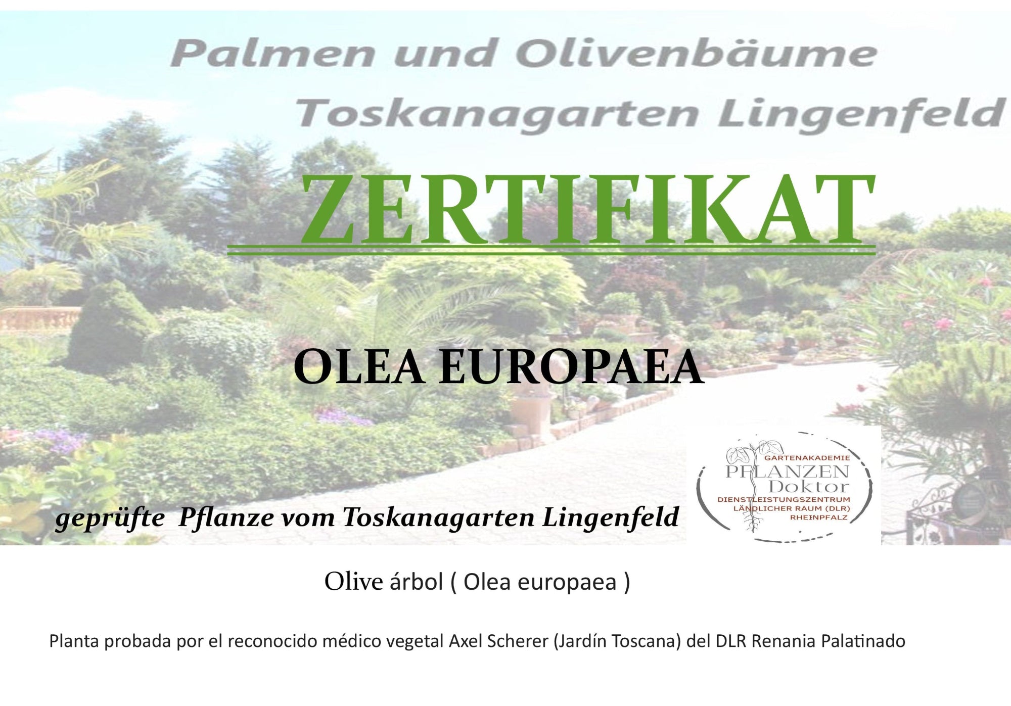 Ihr Toskanagarten mit dem anerkanntem Pflanzendoktor der DLR -Rheinland Pfalz garantiert den virusfreien Olivenbaum.